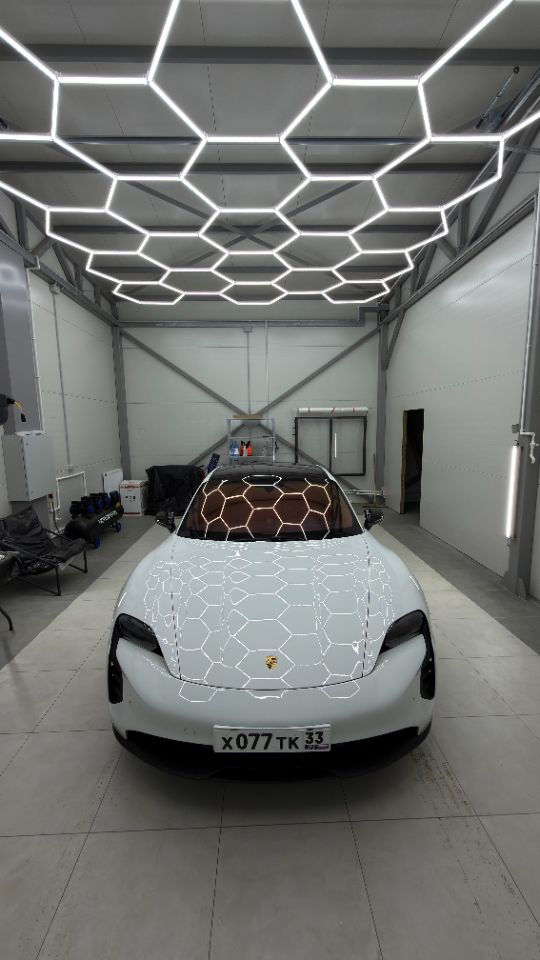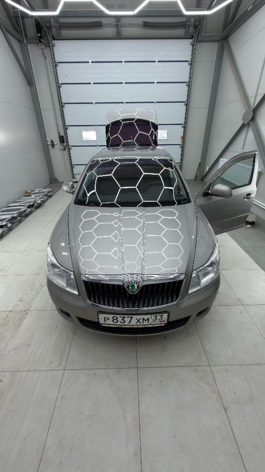Обработка внешних поверхностей автомобиля керамическим составом на основе нано-кремнезёма (SiO₂) для создания твёрдого защитного слоя, обеспечивающего гидрофобный эффект, защиту от загрязнений и улучшение видимости в любых погодных условиях.